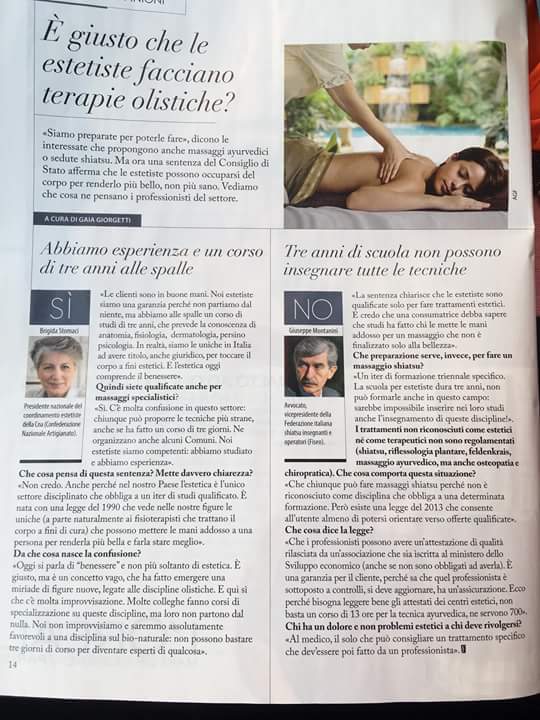 Con questo titolo comincia un articolo nel quale si fa menzione dell’attività dell’estetista in campo olistico e in merito al quale ci tengo a contribuire per fare un po’ di chiarezza.